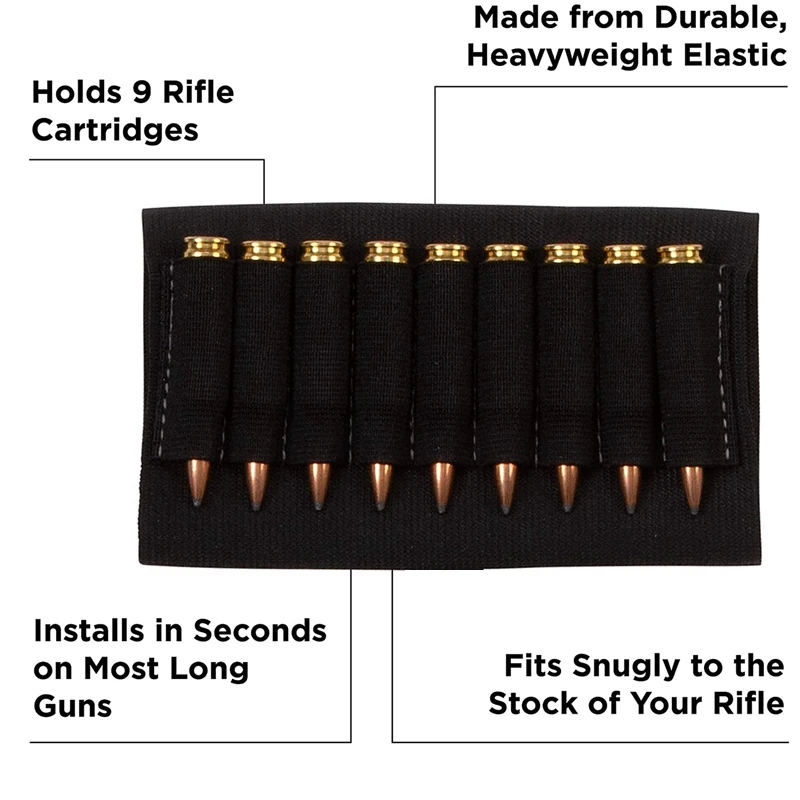 This shotgun buttstock shell ammo holder is designed to keep 12-gauge shells secure and easily accessible during hunting or shooting activities. Available in multiple capacities including 5, 7, 8, 9, and 14 rounds, it fits conveniently on the rifle or shotgun buttstock for quick reloads. The durable construction ensures shells stay firmly in place while allowing smooth removal when needed. Practical and lightweight, this ammo holder is an essential firearm accessory for hunters and shooting enthusiasts seeking efficiency and readiness in the field.